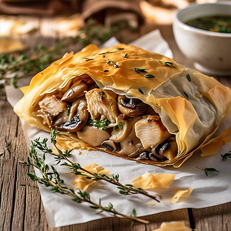 3. Encimar 2 láminas de Masa Strudel “Delicias de Oriente” y pincelar con
